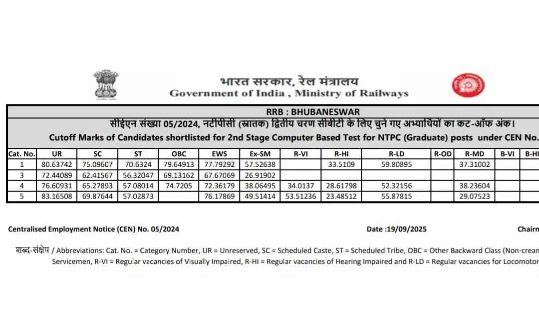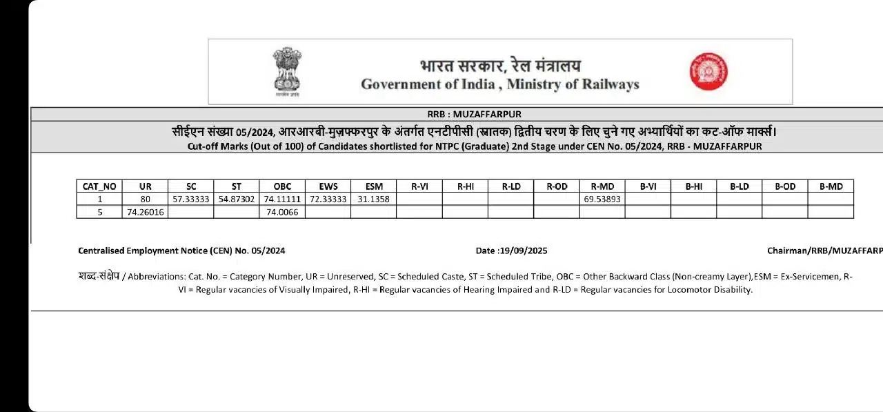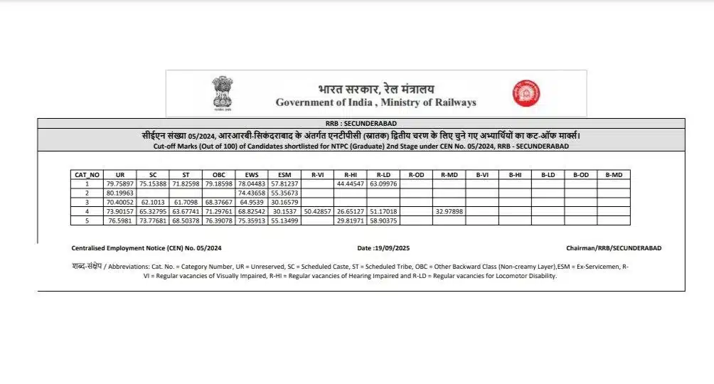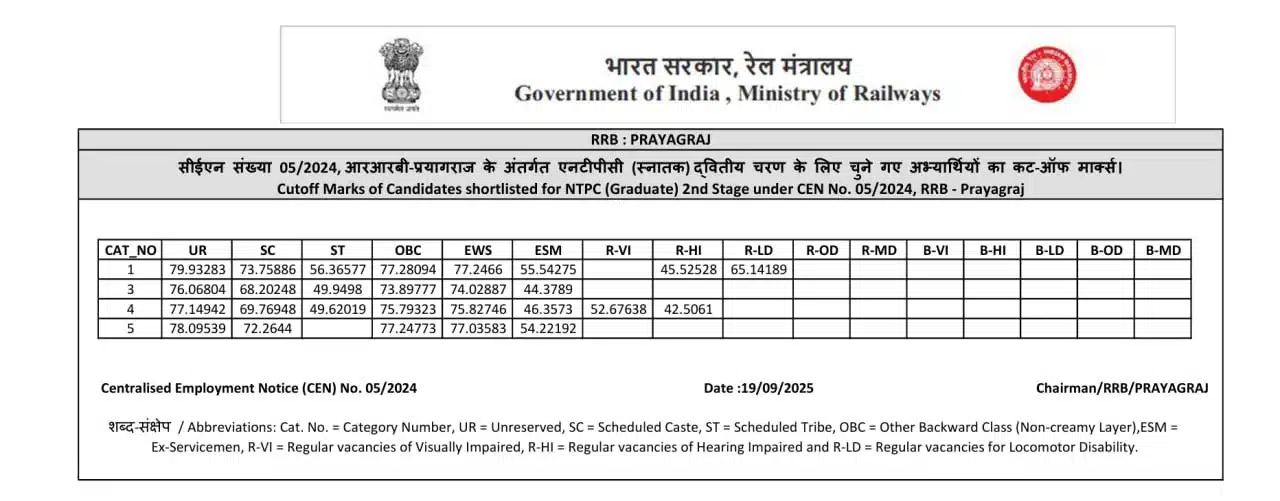 📊 RRB NTPC Graduate Level Zone Wise CBT-2 Result / Cutoff 2025